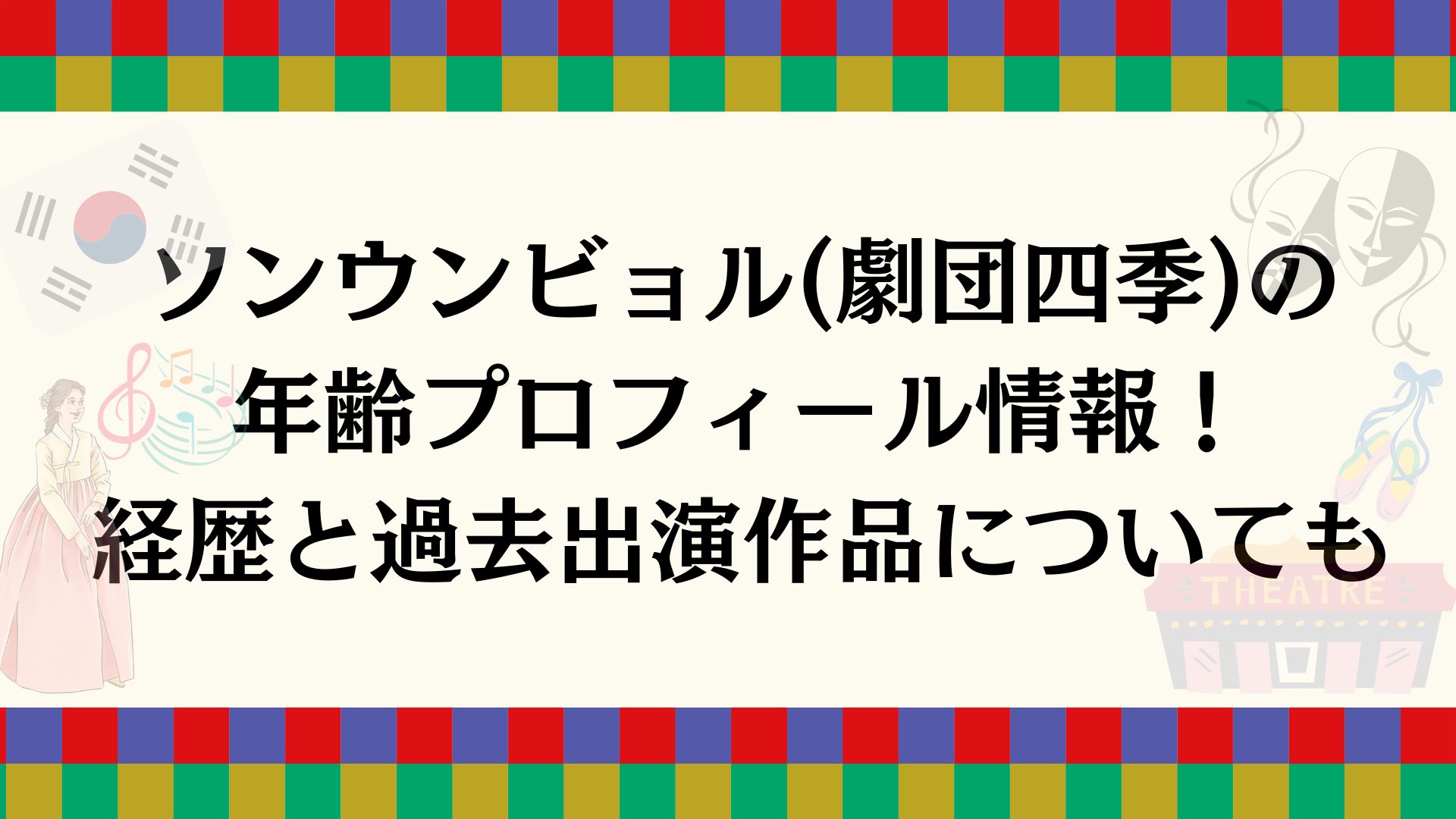 ソンウンビョル(劇団四季)の年齢プロフィール情報!経歴と過去出演作品についても